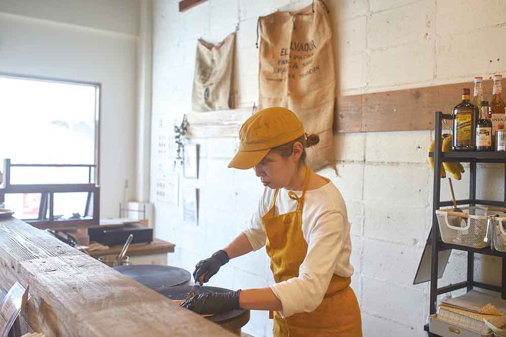 スイーツ系をオーダーする時は、まず生地を選びます。北海道産のそば粉100%の「ガレット」は、もちっした食感を残しながら、表面はパリッと。香るそば粉が食欲をそそります。少し甘い「クレープ」は、アーモンド粉が入ったパリサク生地。フランス製の専用鉄板で一枚ずつ手焼きしています。