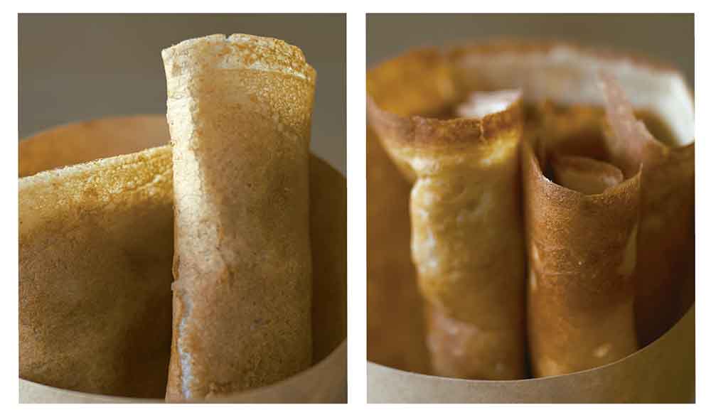 (右)クレープ生地 (少し甘い) アーモンド粉入りでパリサク!